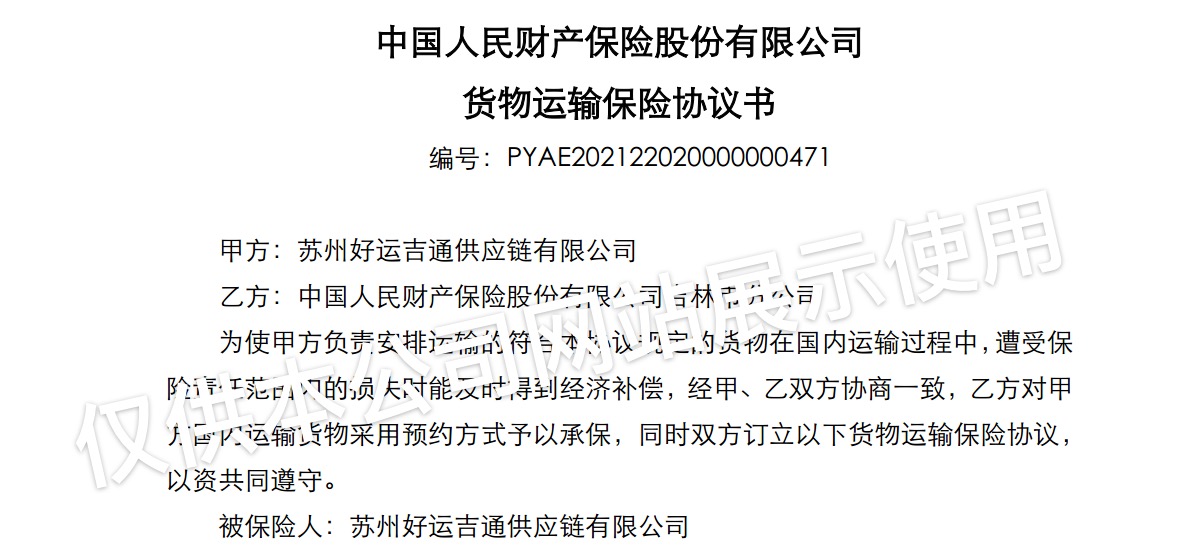 好運吉通供應鏈蘇州到四平物流專線自成立以來,始終堅持以“實現(xiàn)貨主最高保障,締造和諧優(yōu)質服務”為企業(yè)使命,為貨主提供全方位的物流運輸服務。好運吉通供應鏈通過誠信、合作的理念,與中國人保簽訂了全年貨物運輸保險協(xié)議,為貨主提供貨運保險。真正的為貨主提供運輸保障服務!