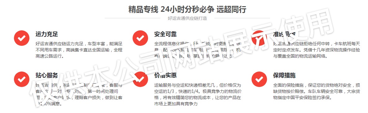 6.物流抵達(dá)超安全:把所有貨物都參保貨物險,造成的貨物損失按100%賠付,全程低風(fēng)險.